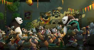 - Pasukan pemberontak di kubu panda menyebut diri mereka pasukan pangsit, pasukan penggiling, mie, api, kue, pemeluk erat dan pembawa bencana. Kedua ayah Po; Mr. Ping dan Li Shan, bersatu disebut pertahanan ayah ganda hmmm.
